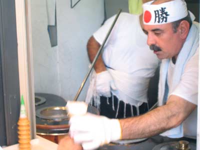 必勝はちまきを巻いたおっちゃんが。 ここまで伸びる! と実感させられるパフォーマンスが。 おおっと、それ以上は秘密です。 |