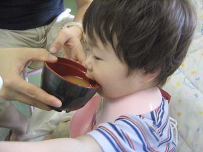 嫌いだったみそ汁も、 一口ずつ飲むように。 半分くらい、残しちゃいますけどね。 |