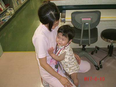 廊下でAK看護師さんを見つけると、走って抱きついていく。