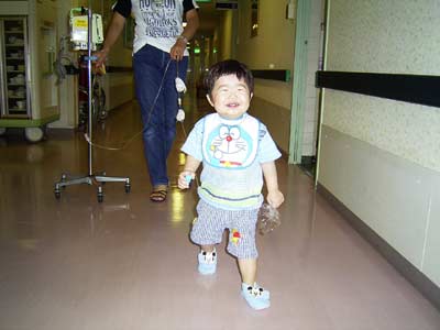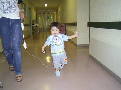 夏休みでプレールームはいっぱい、廊下を行進。