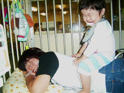 ママが時間までスキンシップを図る。