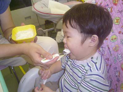 まったりと遊び、歯磨き・オムツ替えを済ませる。