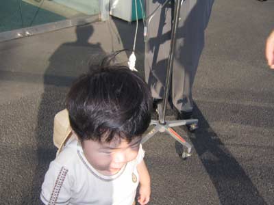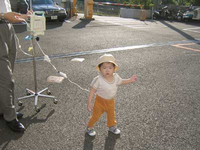 ママがオムツを買いに出る間、私が息子の散歩係。