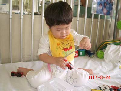 本日最初の仕事がオムツ交換、オシッコのみで異常なし。