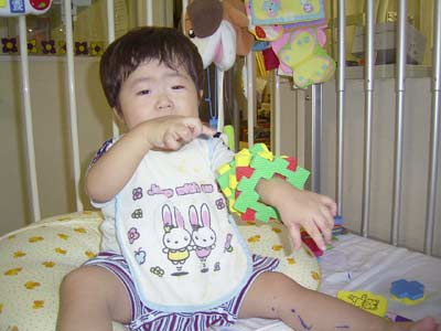 う〜ん、と延びをして、ご機嫌の息子。 |