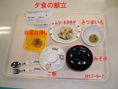 白菜お浸し(完食)・さつまいも(完食)」