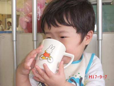 今日のオヤツは「ジュースとヨーグルト」。