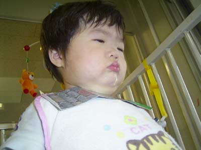これも秘技!アゴ挟み!! ・・・だいぶふっくらしてきたな。 ヨダレは相変わらずだけど。 |