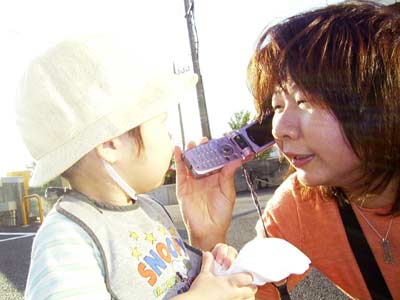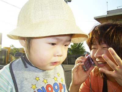 何か喋ってごらん! 息子は不思議そうに携帯を覗き込むだけ。 |