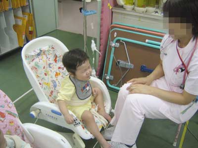 「ごめんね〜」と言って戻るとベットの柵に顔を押し当ててお茶目な顔。