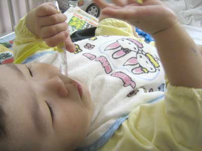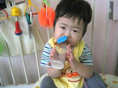 歯磨きは、少し上手になったかな? 殆どしゃぶっているだけですが・・・。 |