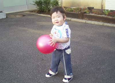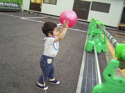 息子は少しボールに慣れてきた。