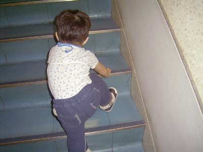 まってぇ〜!! 帰りは階段を上がらせます。 |