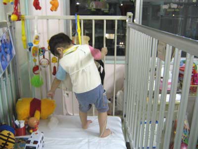 大泣きしている我が子をかかえ人さらいのようにプレイルームへ。
