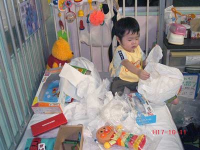 看護師さんに午前中の様子を聞くと、午前中は少しぐずったという、