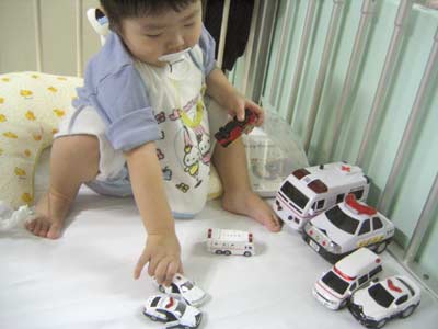しばらくマットの上で絵本をよんだり、車で遊ぶ。