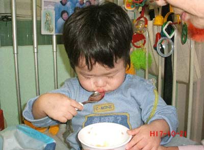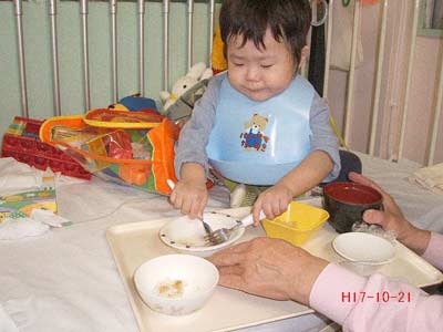 自分で食べたり。 なかなか上手くなってきたよな。 |