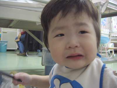 今日は寝覚めが悪く、目を開けずに大泣き。