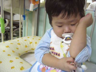 処置の間、子はなぜか「ひじ。ひじ。」っと肘を触らせろと要求。
