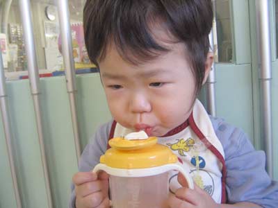 機嫌が悪かったので、おやつのオレンジジュースを一気のみ。