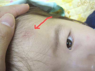 アタマから転落! アザになりました。 |