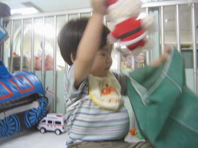 「お昼寝しなかったの?」と聞くと、「寝るのイヤ!!」