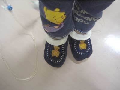 新調した靴。 ブーティーと言われる種類なんだそう。 家の中も外履きという外国での、子供用の室内履きなんだとか。 靴底や全体が軟らかく、子の足の発達を考え、こういう軟らかいのにしています。 |