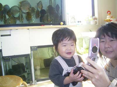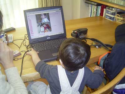 自分のHPを初めて見る、の図。 これもあまり反応は無かったが、 いずれ字が読めるようになったら、 何か感じてくれるかな? |