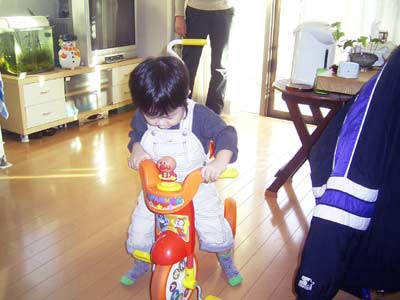 病院は三輪車禁止と知らず、 購入以来ずっとオクラ入りだった、三輪車。 漕ぐことはできませんでしたが、大変気に入ってくれたよう。 |