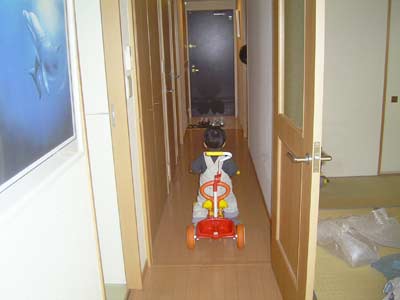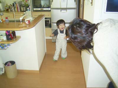 息子は初めての「床」の感触を確かめるかのように、トントンと足踏み。