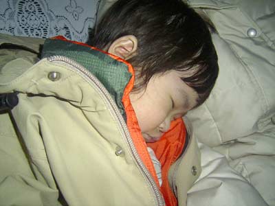 また車・・・ そんな顔をしながら、息子はタクシーの中で眠りについてしまいました。 昼寝もしていないし、初めて経験することばかりだったので、余程疲れたのでしょう。 面会中は絶対に寝ない息子も、瞬殺でした。 |