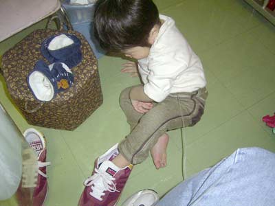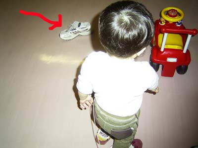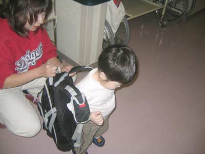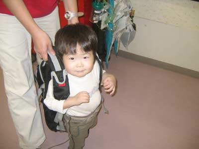 うーん、うーん! とパパのリュックを背負うと聞かない。 |
