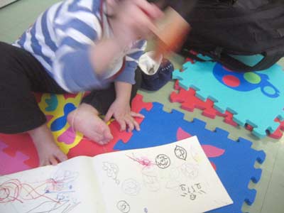 一緒のオモチャで遊びたがられたけど、ここは・・・何かあっては大変。