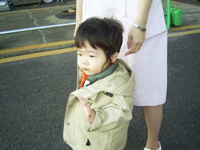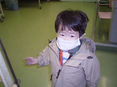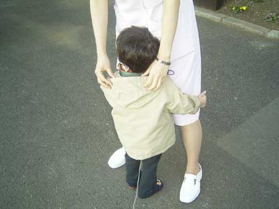 外に出ると、さむい〜と看護師さんに抱きつき。 OGさん、半袖で大丈夫でした? |