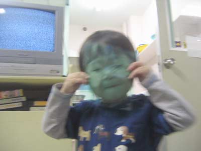 ぜんぶ、あお〜! ちょっと怖いぞ。 |