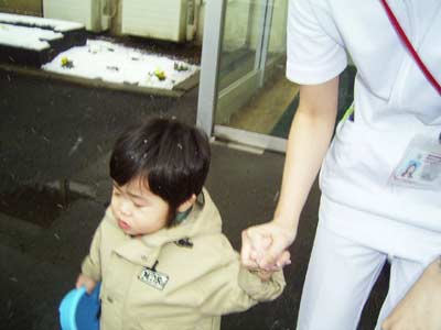 おお、子を見つけたII先生が、雪を抱えて来て下さったのだ。
