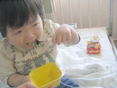 ずいぶん自分で上手く食べれるようになる。今日は一人でちゃんと食べてました。