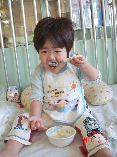 スプーンの扱いは右手は不器用、左利きになりそうな予感がします。