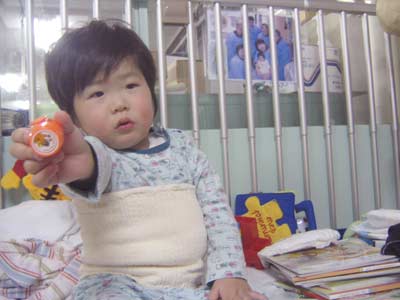 「ママきた!!」看護師さんの制止もきかず走ってくる。