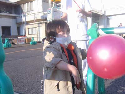 しばらく歩くと「風船持ってくる!!」と言って病院へ戻ろうとする。