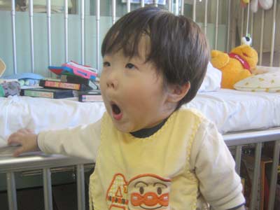 一昨日初めてできた、ガラガラ、ぺっ! 猛特訓です。 |