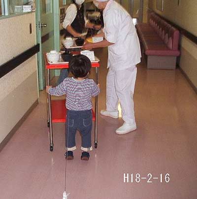 まで迎えに来てくれた。ギャーギャーいながらおばさんに手を取られ配膳車に直行。