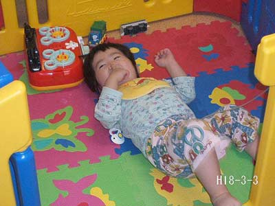 丁度昼寝起きで、おむつ交換が終わるところでした。