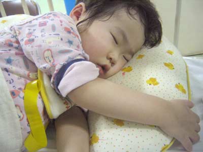 これじゃ寝られないと思うけど、ママがいてもどうしようもない。