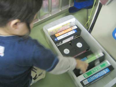 一緒にお片づけ。バッテリーが切れていたのでベットで遊ぶ。