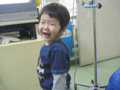 寝起きはまぁまぁ。OMさんに抱っこしてもらって病室へ。