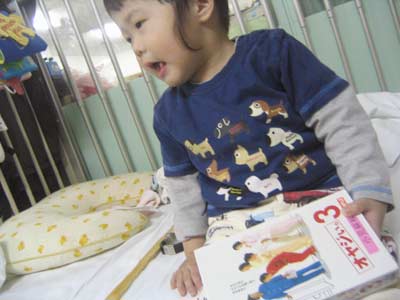 ベットサイドで遊んでいるとすぐトイレに行きたいと言う。