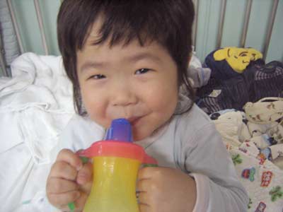 うふっ!おいちい! 早く好きなだけ飲めるようになればいいね、 お茶。 |