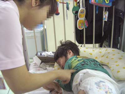 新しい看護師さんに囲まれて大はしゃぎ。