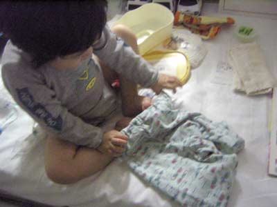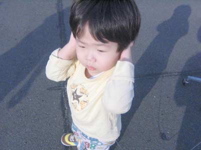 いつも見送るだけの息子。 そうそう、ズボン履こうな・・・。 |